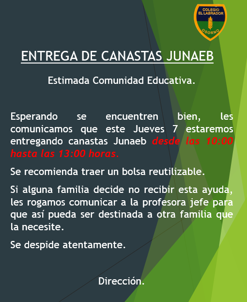 » Entrega de Canasta Junaeb Octubre N°1